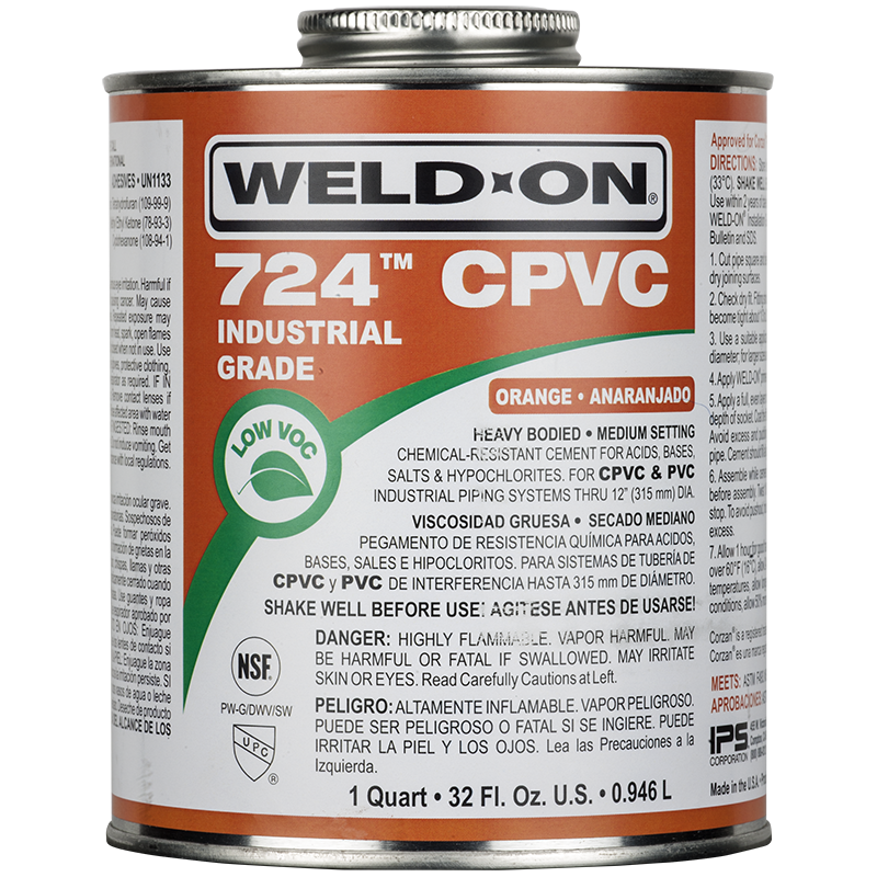 Клей для ХПВХ и ПВХ труб до 315 мм, с кисточкой, оранжевый Weld‑On 724 CPVC