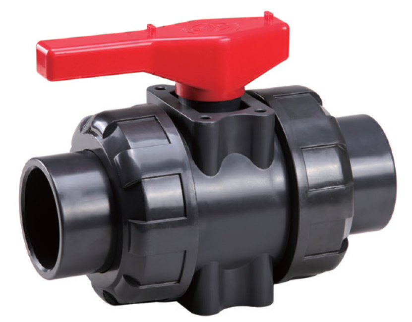 Кран шаровой ПВХ (НПВХ) разборный промышленный под клей, PTFE (Ру16), Китай