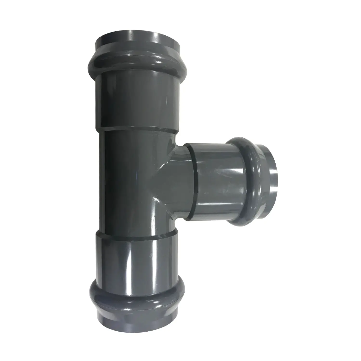 Тройник напорный НПВХ 125 равнопроходной 90° раструбный под уплотнительное кольцо, цвет серый (Россия)
