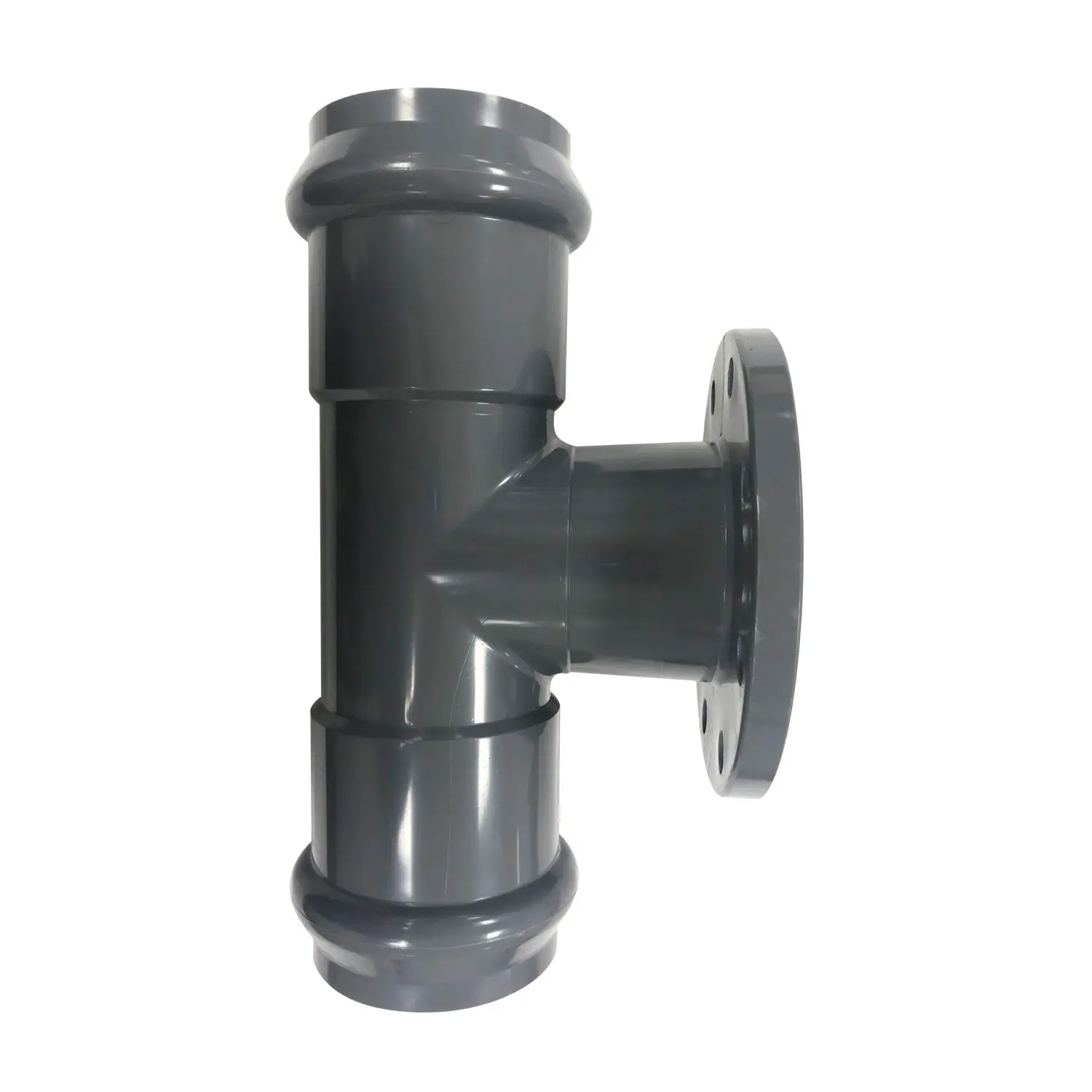 Тройник напорный НПВХ 125 равнопроходной 90° раструбный с ПВХ фланцем, цвет серый (Россия)